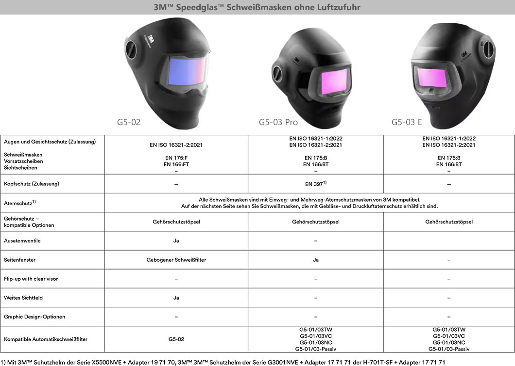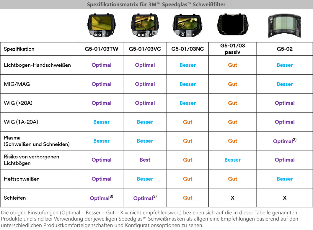 Mit dieser Serie gibt es keine Einheitslösung. Die Speedglas™-Schweißmasken von 3M™ bieten jedem Schweißer und für jede Anwendung eine individuelle Lösung. Grundsätzlich stehen bei allen Modellen der Speedglas™-Serie die folgenden vier wesentlichen Faktoren im Vordergrund: Zuverlässigkeit, Komfort, Schutz und Sicht!